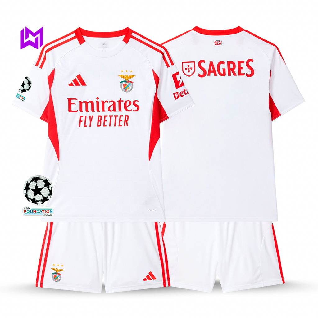 Conjunto Infantil Benfica Alternativa Branca 2025/26 - ÚLTIMAS UNIDADES! 🔥🦅